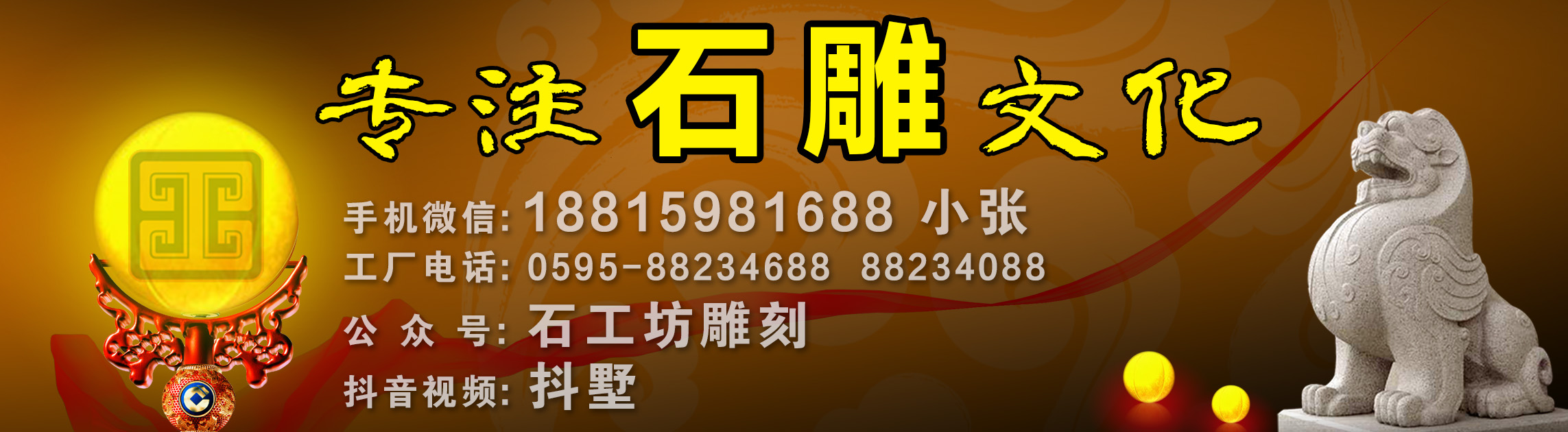 石工坊雕刻,位于素有中國(guó)(guó)石雕之都美稱(chēng)(chēng)的福建省泉州·惠安[點(diǎn)(diǎn)擊了解惠安石雕]。我們以傳承石雕工藝、弘揚(yáng)(yáng)中華文化為已任,網(wǎng)(wǎng)絡(luò)(luò)和聚集了一大批專(zhuān)(zhuān)業(yè)(yè)的雕刻和設(shè)(shè)計(jì)(jì)人才。長(zhǎng)(zhǎng)期從事石雕設(shè)(shè)計(jì)(jì)雕刻和施工安裝。特別是園林景觀(guān)雕塑、寺廟古建雕刻及歐式建材雕刻等石頭雕刻工程。如動(dòng)(dòng)物雕塑、人物雕像、景觀(guān)浮雕墻、石雕照壁、石欄桿、石牌坊、石亭子、石塔等。